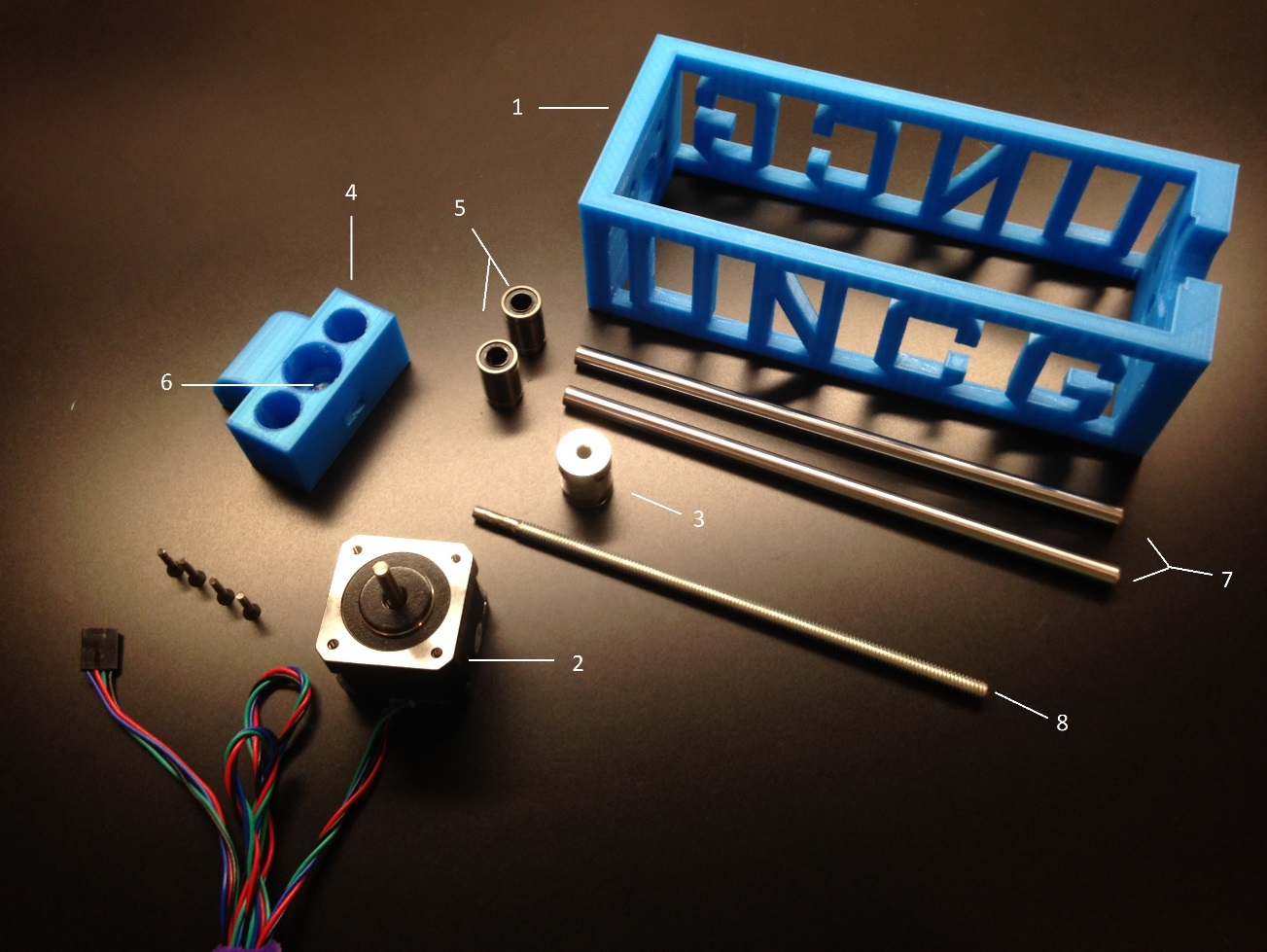 A linear ball bearing bushing is inserted into the side holes on the pushing block. They should fit tightly so a little force may be needed to insert them.