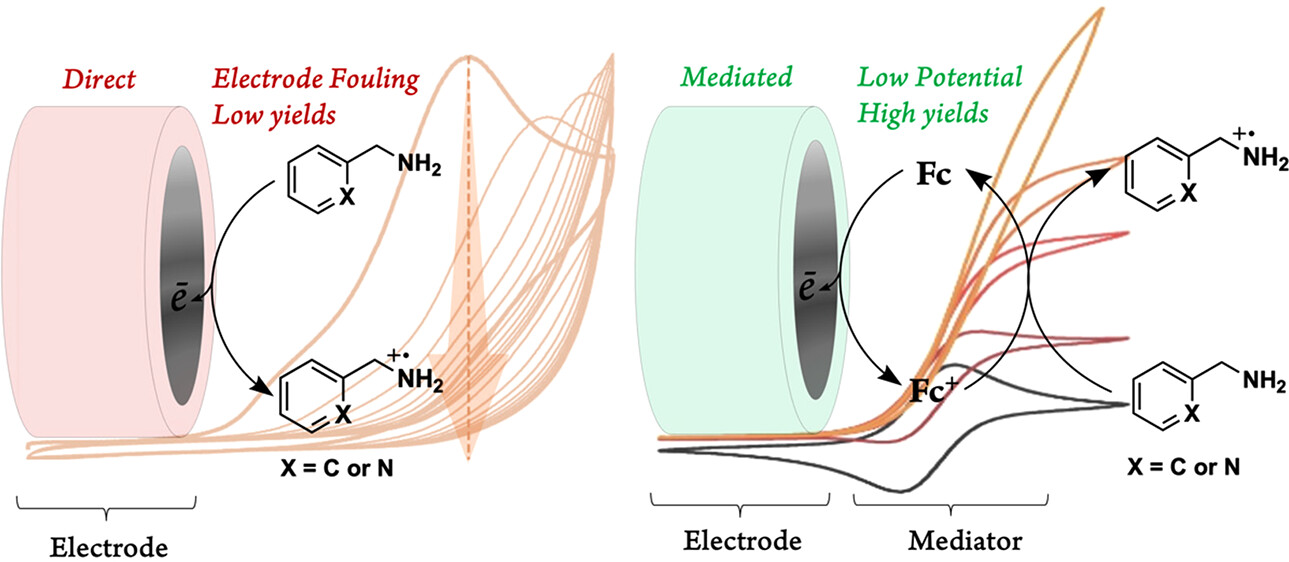 | 18 | Electrocatalytic Anaerobic Oxidation of Benzylic Amines Enabled by Ferrocene-Based Redox Mediators Amy L. Waldbusser and Shabnam Hematian* Organometallics, 2024, 43, 20, 2557–2564. https://doi.org/10.1021/acs.organomet.4c00219 Invited contribution to the Applied Organometallic Chemistry special issue. ![]() |